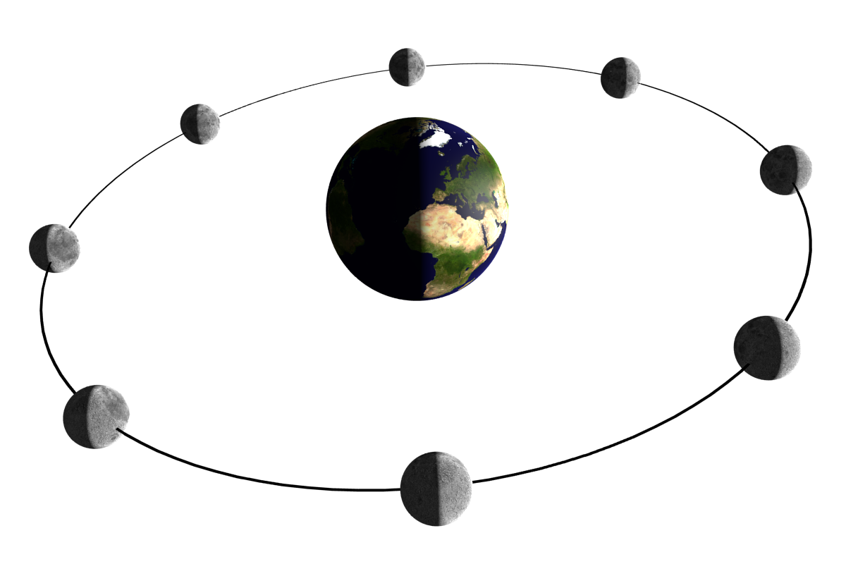- Astronomie, Licht, Mond, Mondphasen, Schatten