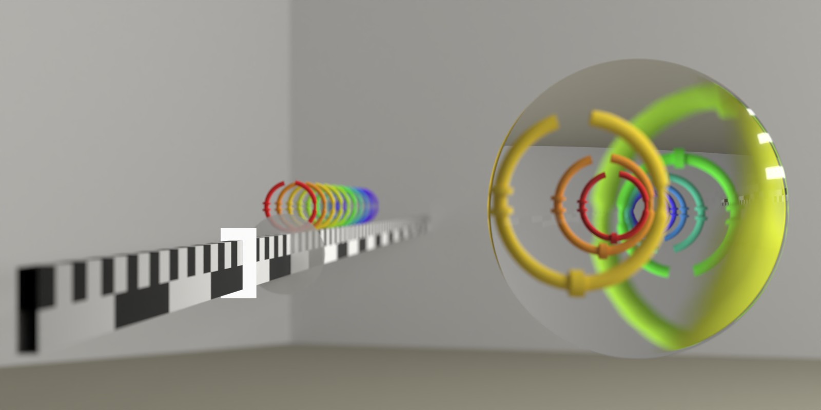 Noch näher an der Linse werden die am weitesten hinten liegenden Ringe scharf abgebildet.